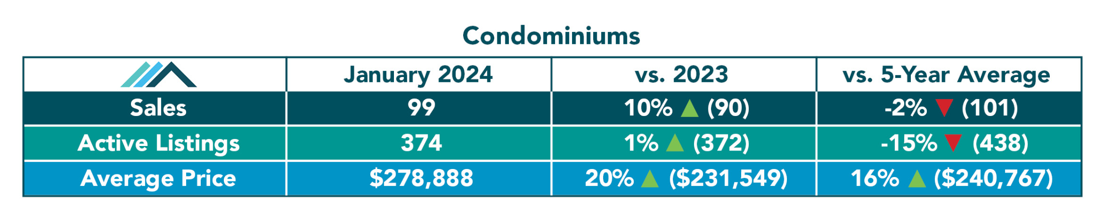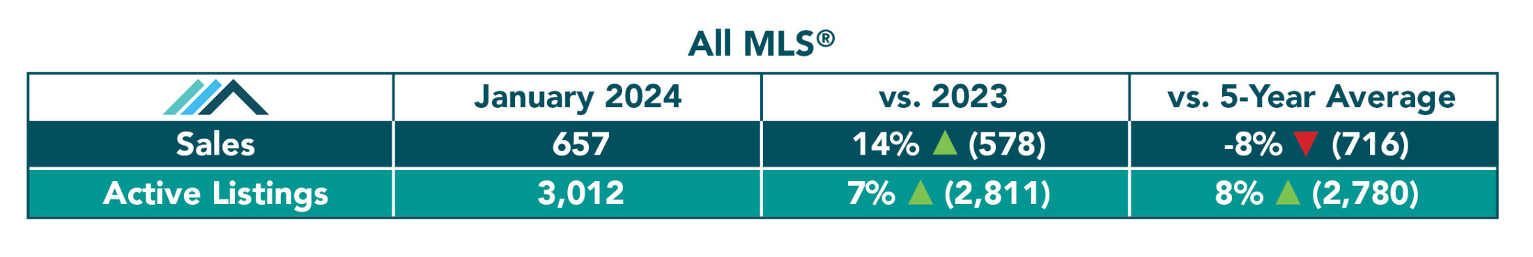 WINNIPEG, February 8, 2024 – January 2024 started with increases to MLS® sales, listings, dollar volume and average prices across all of the main three residential property types of residential detached, condominium and residential attached homes when compared to last January.