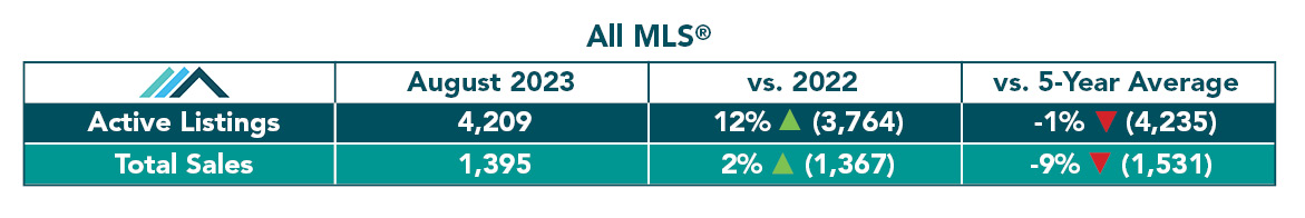 All MLS® sales in August were 2% higher than July, 2% higher than August of 2022 and 9% below the 5-year average. In keeping with the theme from July's Market Release, the MLS® sales performance for August was 6% above the 5-year average of Augusts between...