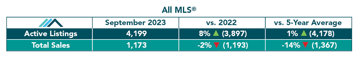 All MLS® sales in September were 2% lower than the Septembers of 2019 and 2022, and 14% below the 5-year average. Active...