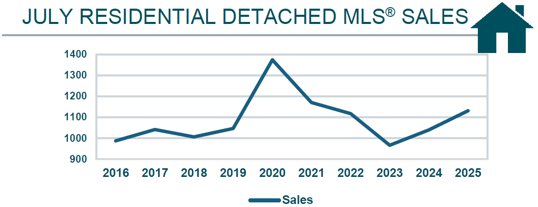 Winnipeg, August 7, 2025 – July 2025 saw All MLS® sales of 1,620 up 9% over July 2024 and up 6% over the 5-year average. Active MLS® listings of 3,678 were down 12% and total MLS® dollar volume of over $646 million up 12% from July 2024. Residential detached MLS® sales of 1,131 were up 9% while the average price of $443,635 was up 2% when compared to July 2024. Condominium MLS® sales of 238 were up 12% and the average price of $284,845 was statistically even with last July.