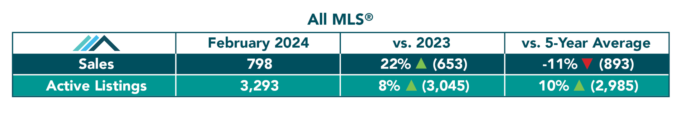 WINNIPEG, March 7, 2024 - February 2024 saw total MLS® sales, listings, dollar volume and average prices increase over 2023. With the exception of residential attached active listings, a similar trend was seen across the main three property types of residential detached, condominium and residential attached homes.