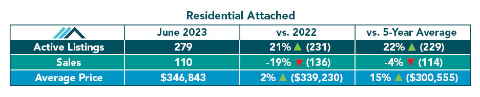 The average price for a residential detached home fell 2% over June of last year but is up 9% over the 5-year average. Meanwhile, the average price for the first half of 2023 is down 8% over the first half of 2022 but is up 7% over the 5-year average.