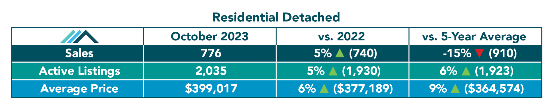 The average price for a residential detached home rose 6% over last October and is up 9% over the 5-year average.