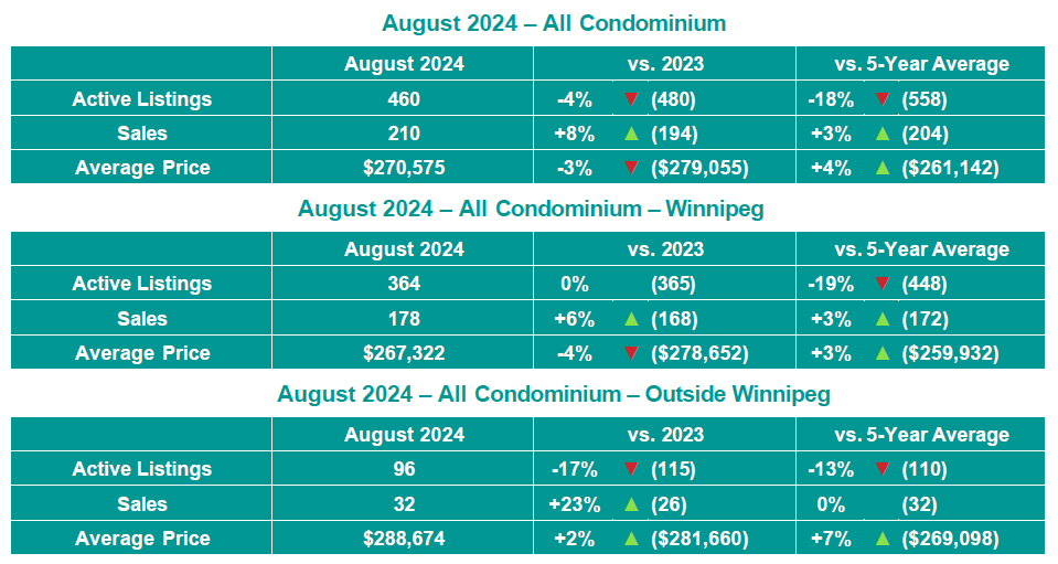 "For the seventh time in eight months of 2024, MLS® sales across the three main property types of residential detached, condominiums, and residential attached homes increased over last year," said Daphne Shepherd, 2024-2025 President of the Winnipeg Regional Real Estate Board. “On a year-to-date basis, MLS® sales for the main three property types are also up over last year. Condominium MLS® sales were the lone property type to rise above the 5-year average both in August and on a year-to-date basis, signaling steady demand in the condominium market."