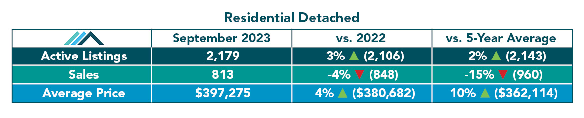 The average price for a residential detached home rose 4% over last September and is up 10% over the 5-year average.